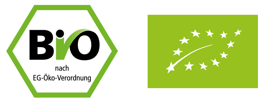 Seit jeher setzen wir auf hohe biologische Standards. Unsere Bio-Produkte sind nach den ökologischen Richtlinien der EU-Öko-Verordnung zertifiziert.Das 6-eckige Siegel ist das ehemals deutsche Biosiegel. Das EU-Bio-Siegel – das grüne Logo mit dem weißen Blatt aus Sternen – garantiert, dass die Rohstoffe für unsere Bio-Produkte ohne Gentechnik, synthetische Pestizide oder chemische Düngemittel erzeugt werden. Das fördert eine nachhaltige und umweltfreundlichere Landwirtschaft.