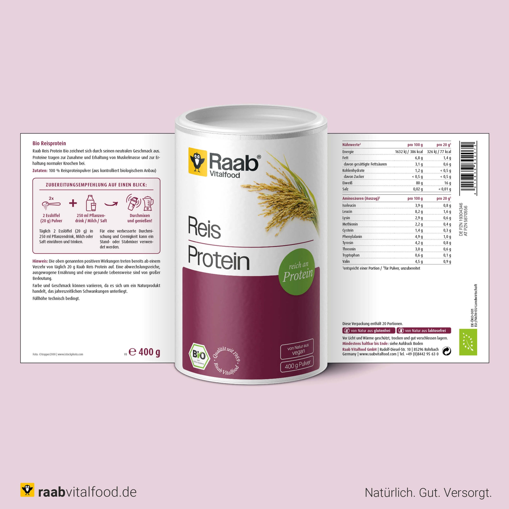 • Hochwertiges pflanzliches Eiweiß – Enthält 80 % Protein Das Raab Bio Reisprotein ist von Natur aus gluten- und laktosefrei und