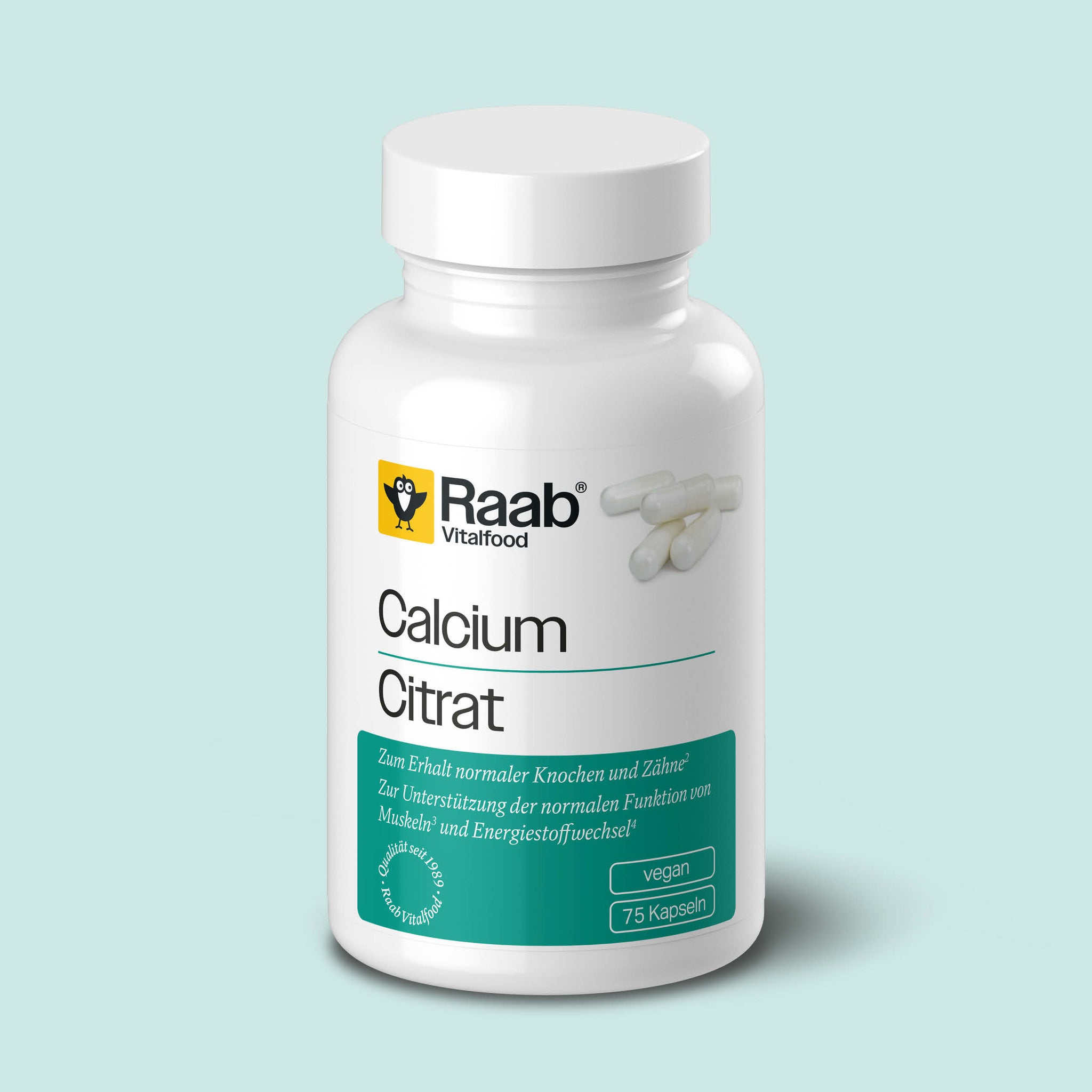 Mit Calciumcitrat bietet Raab Vitalfood eine bewusste Möglichkeit, den Calciumbedarf zusätzlich zur täglichen Ernährung zu ergänzen.
