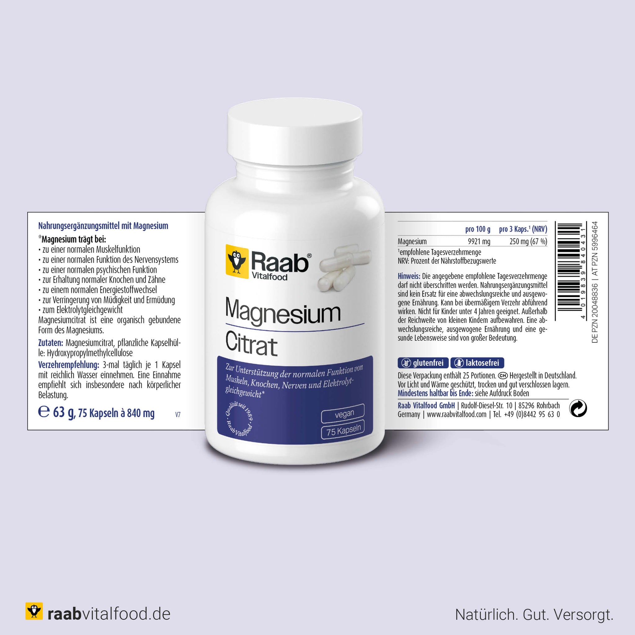 Zutaten: 83 % Magnesiumcitrat, Überzugsmittel: Hydroxypropylmethylcellulose