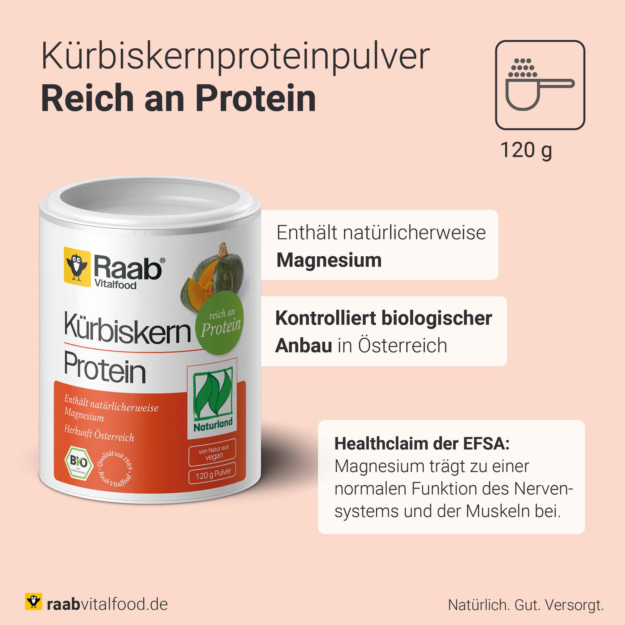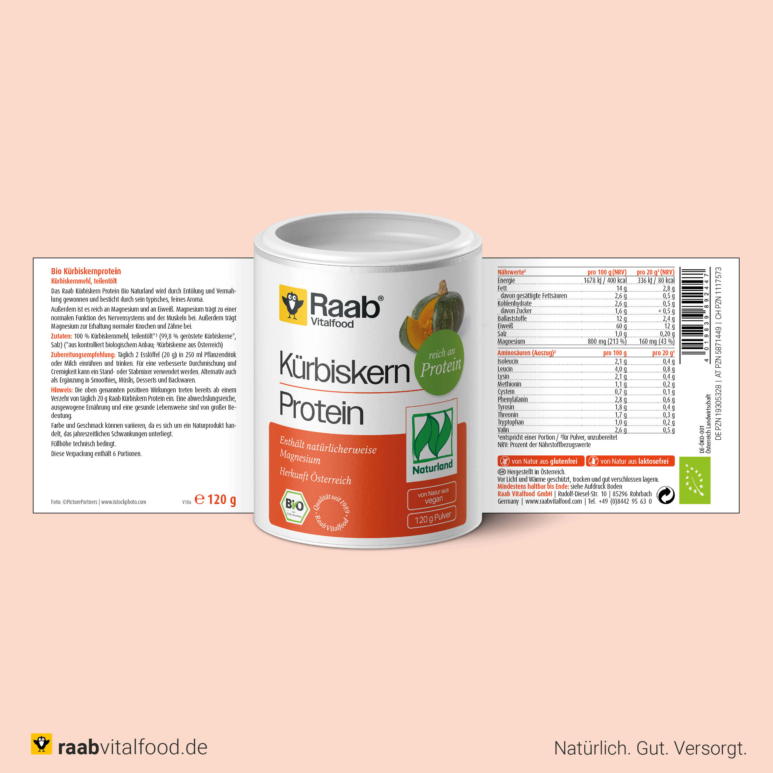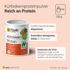 Zutaten: 100 % Kürbiskernmehl, teilentölt* ¹ (99,8 % geröstete Kürbiskerne*, Salz) (*aus kontrolliert biologischem Anbau, ¹ Kürbiskerne aus Österreich)