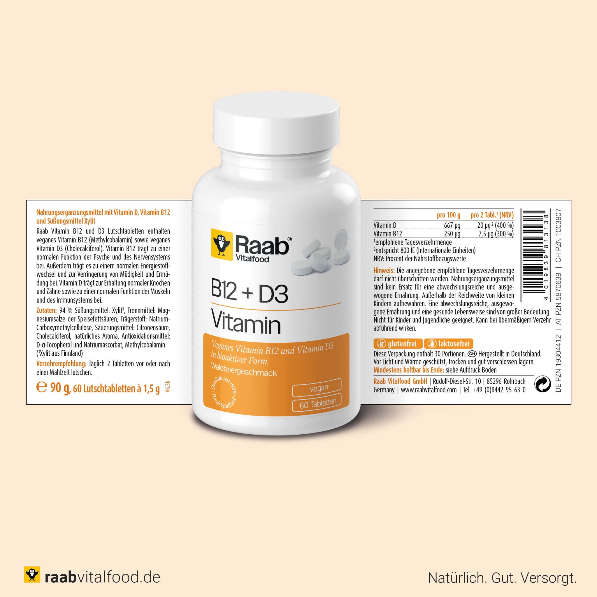 Zutaten: 93 % Süßungsmittel: Xylit*, Trennmittel: Magnesiumstearat, Bindemittel: Natriumcarboxymethylcellulose, Säuerungsmittel: Citronensäure, Vitamin D3, natürliches Aroma, Antioxidationsmittel: D-α-Tocopherol und Natriumascorbat, Methylcobalamin (*aus Finnland)
